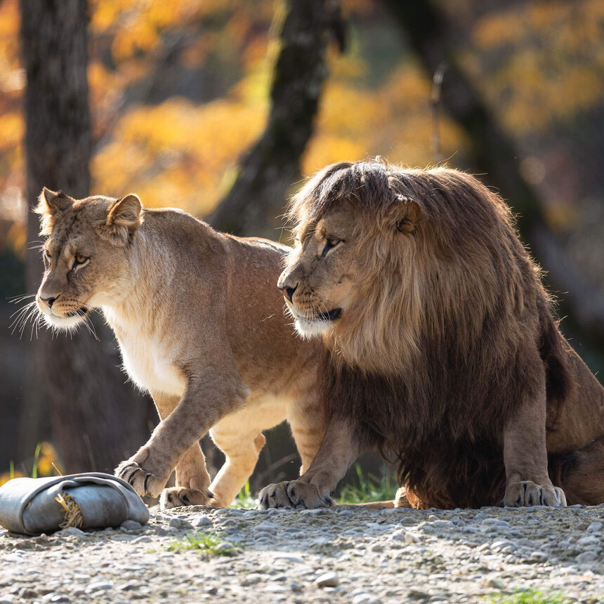 Der Berberlöwe ist in der freien Wildbahn bereits seit Beginn des 20. Jahrhunderts ausgerottet. Als einzige Grosskatzen leben Löwen gesellig in Rudeln von 3 bis 30 Tieren. Entgegen einer weit verbreiteten Meinung führen meist mehrere verwandte Männchen zusammen ein Rudel.