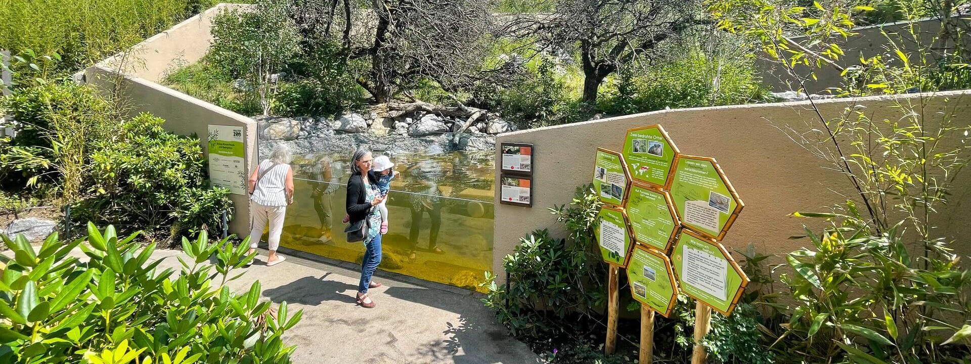 2022 wurde das erste Grossprojekt des Masterplans 2040 eröffnet: Eine Gemeinschaftsanlage für Kleine Pandas und Zwergotter. Auf der stark bepflanzten Anlage mit Bächen, Teichen und Wassereinblick lassen sich die beiden so unterschiedlichen Tierarten hautnah beobachten. Ob die gemütlichen, kletternden Kleinen Pandas in den Bäumen oder die quirligen und schwimmenden Zwergotter am Wasser, irgendwas ist immer los in der WG dieser gefährdeten Arten.