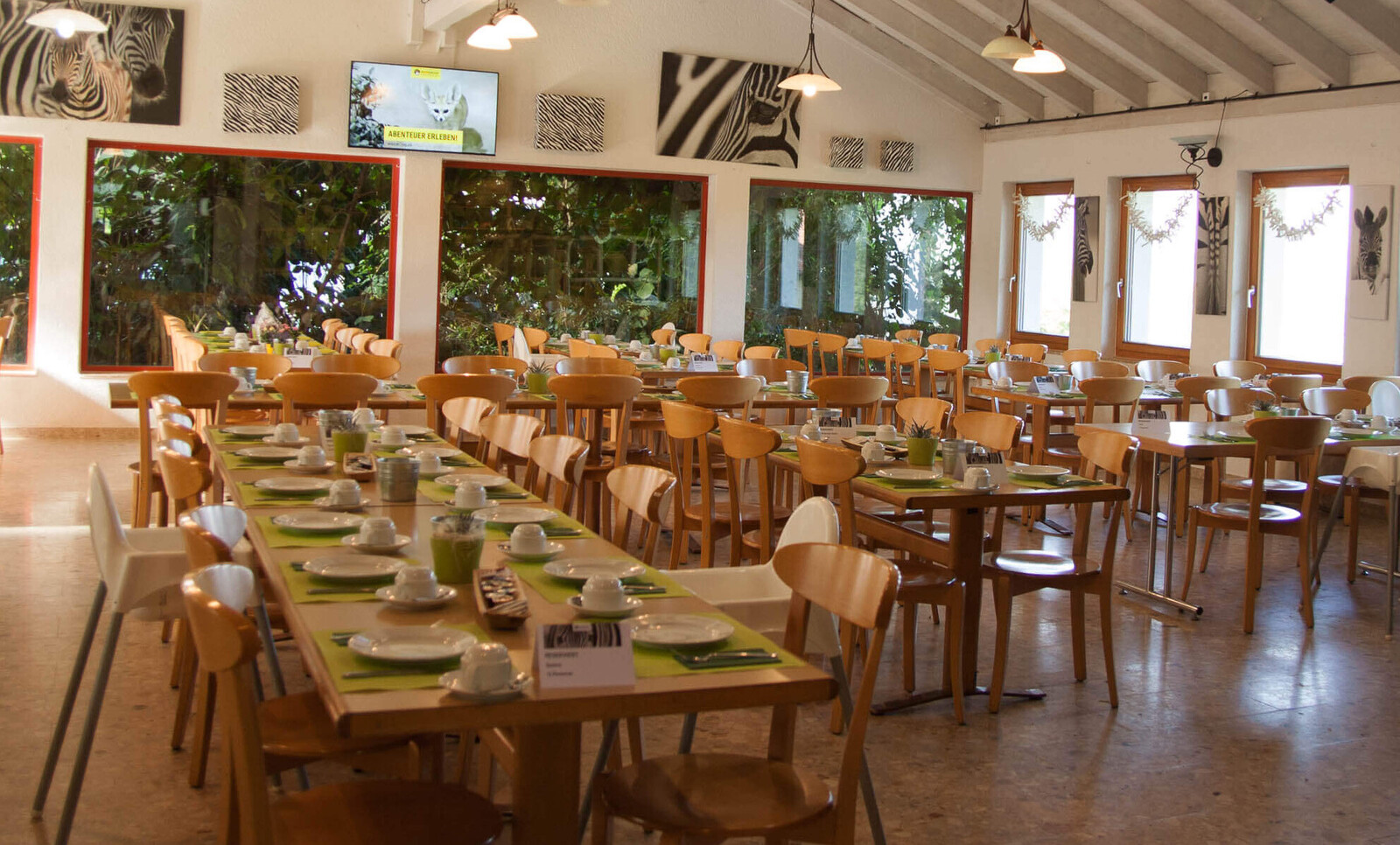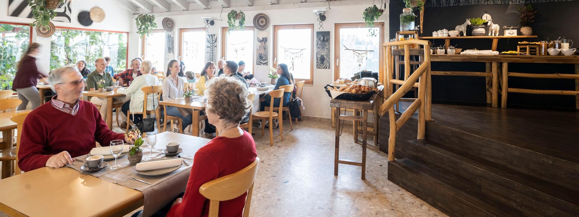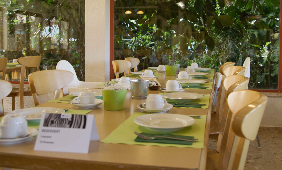 Das Zoorestaurant bietet unseren Gästen die Möglichkeit, den Zoobesuch bei einem Essen mit Blick in unser Tropenhaus abzurunden. Das Gastro-Team freut sich über Ihren Besuch.